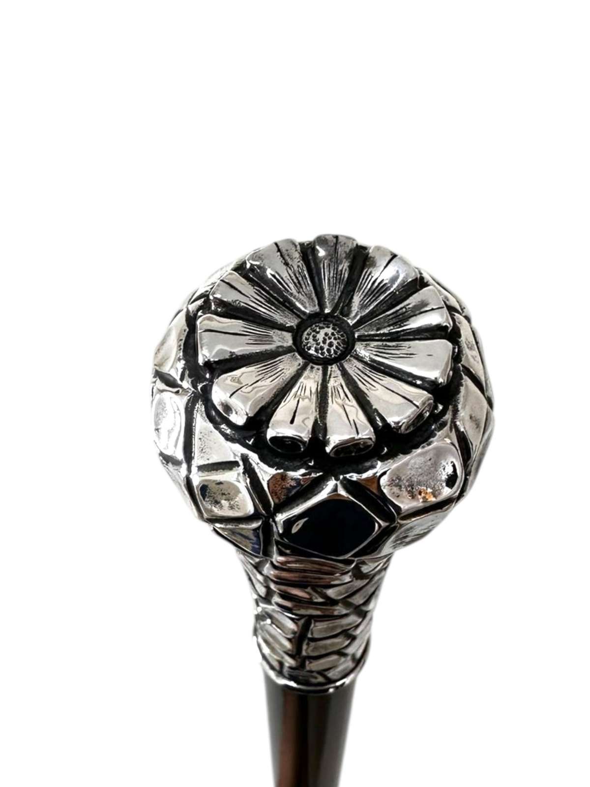 Yılan Pulu Oymalı Çiçek Motifli Asa